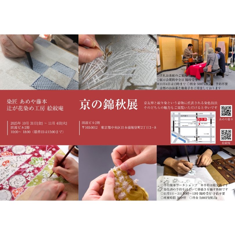今年も東京・日本橋で、京友禅の「あめや藤本」さんと合同で展示会を開催いたします。