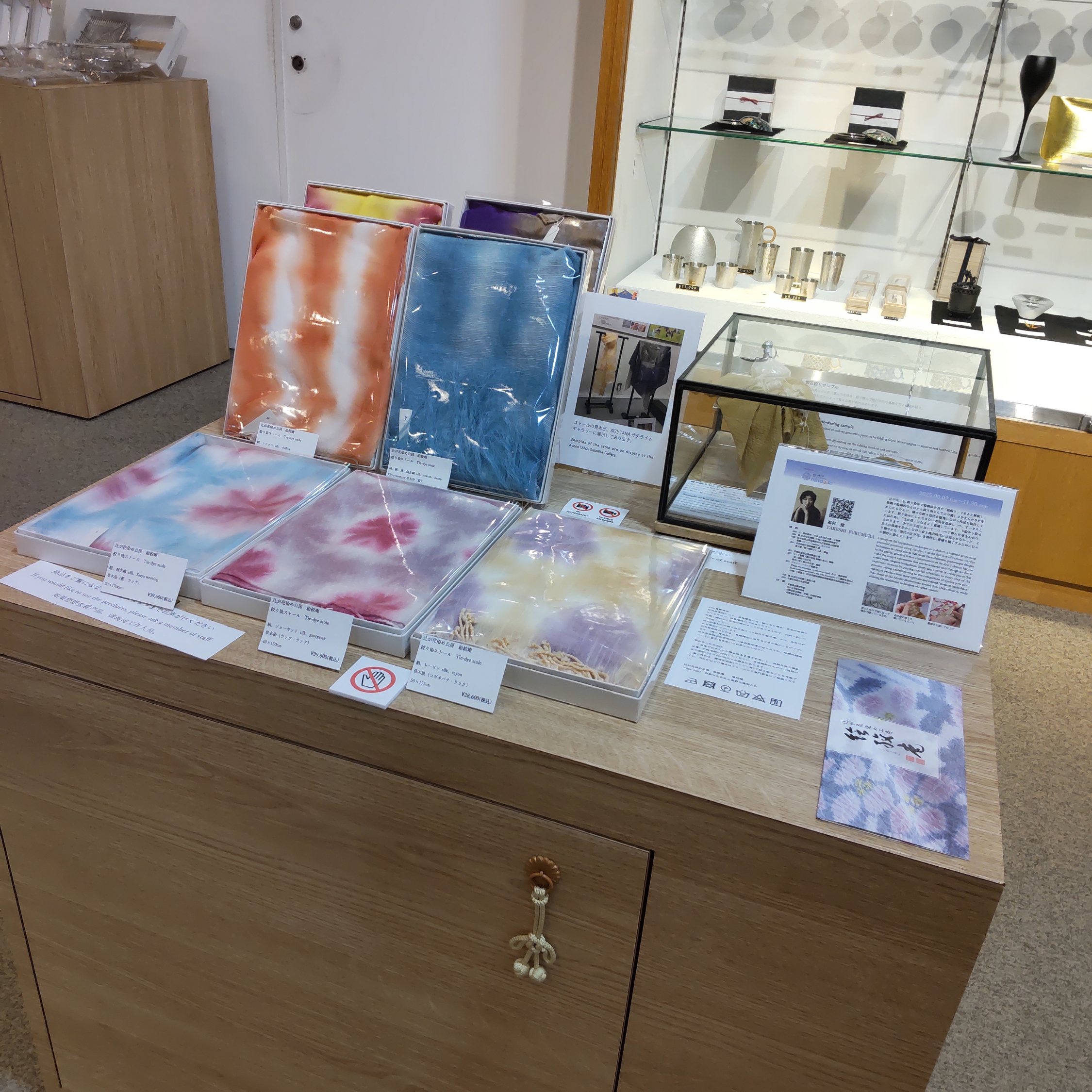 同じフロアの京都伝統産業ミュージアムにて、期間限定でストール類などの小物を少し置かせていただいています。