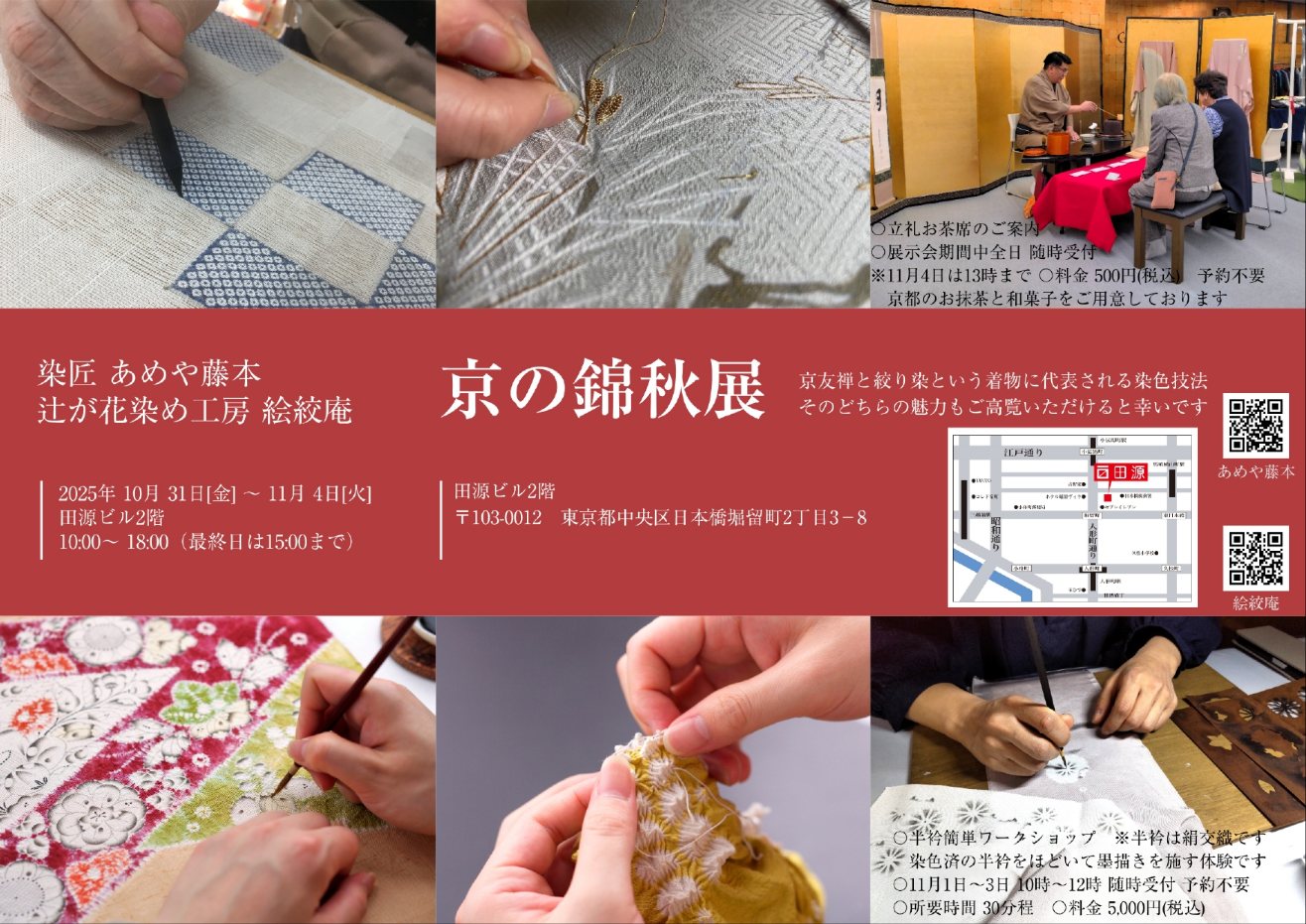 今年も東京・日本橋で、京友禅の「あめや藤本」さんと合同で展示会を開催いたします。
